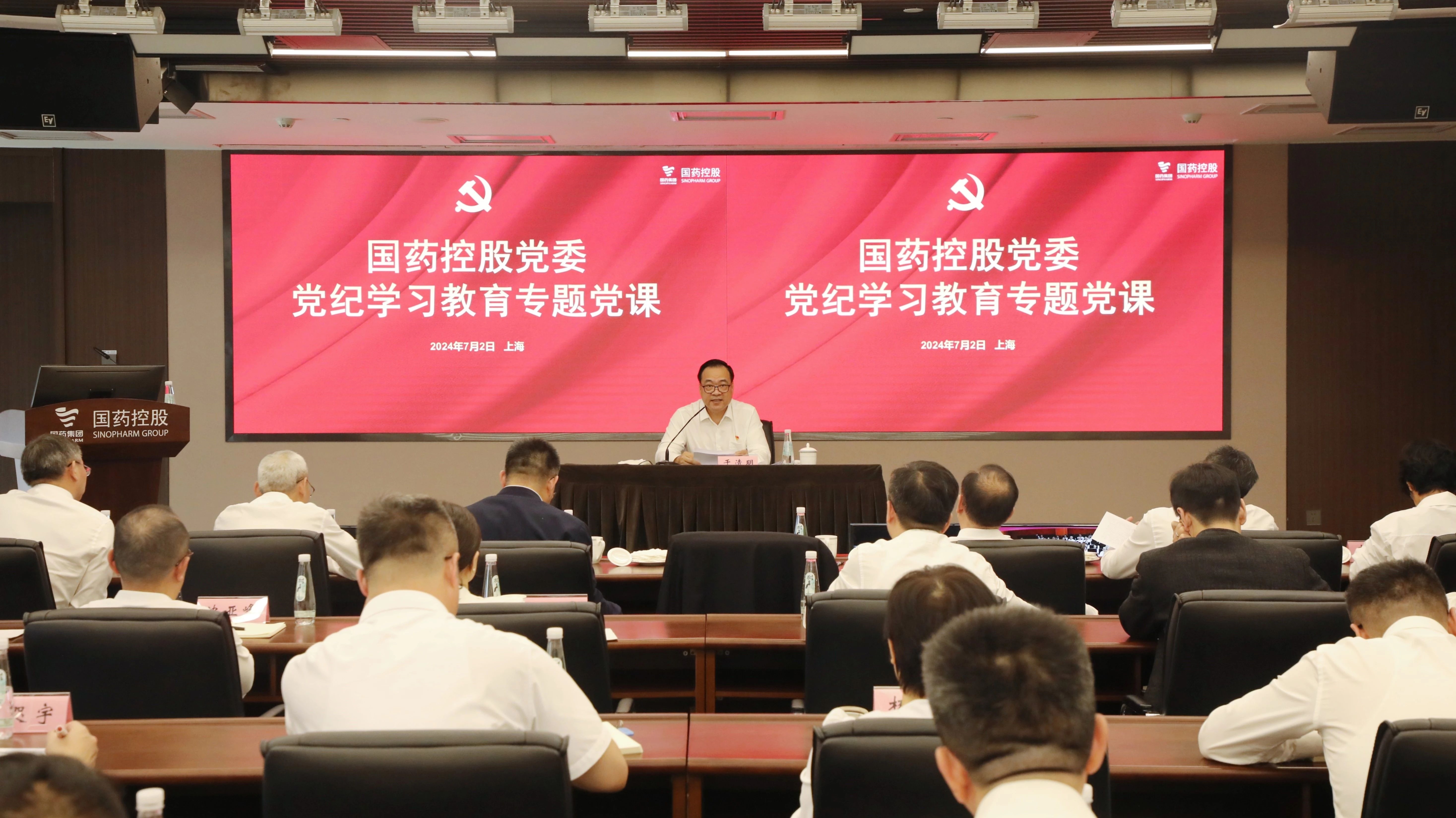 会上,国药控股党委书记、董事长于清明传达了国务院国资委党委书记、主任张玉卓同志在中央企业“两优一先”表彰大会上的讲话精神和7月1日国药集团党委党纪学习教育专题党课暨警示教育会议精神,并以“凝聚意志 锤炼作风 强化约束——以铁的纪律为国药控股改革发展保驾护航”为题,讲授党纪学习教育专题党课。