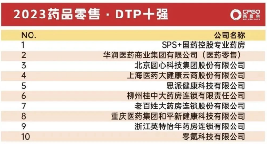 SPS+国药控股专业药房深化全国布局,着力打造承接处方外流、提供药事服务的专业平台,在此次“西普金奖·2023年药品零售DTP十强”榜单中荣登榜首。该榜单是主办方依据DTP综合竞争力指数,从多个维度对入围企业开展评选与分析,彰显了DTP药房行业标杆的竞争优势和行业影响力。