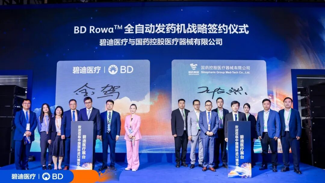 11月6日,国药控股医疗器械有限公司(以下简称“国控器械”)与碧迪医疗,在第八届中国进口博览会现场签署BD Rowa™ 全自动发药机战略合作协议。双方将在医疗流通领域充分发挥各自资源禀赋,整合专业优势,为提升先进医疗设备与智慧药房服务的可及性、安全性和效率贡献更大的力量,更好地惠及广大患者与人民群众。