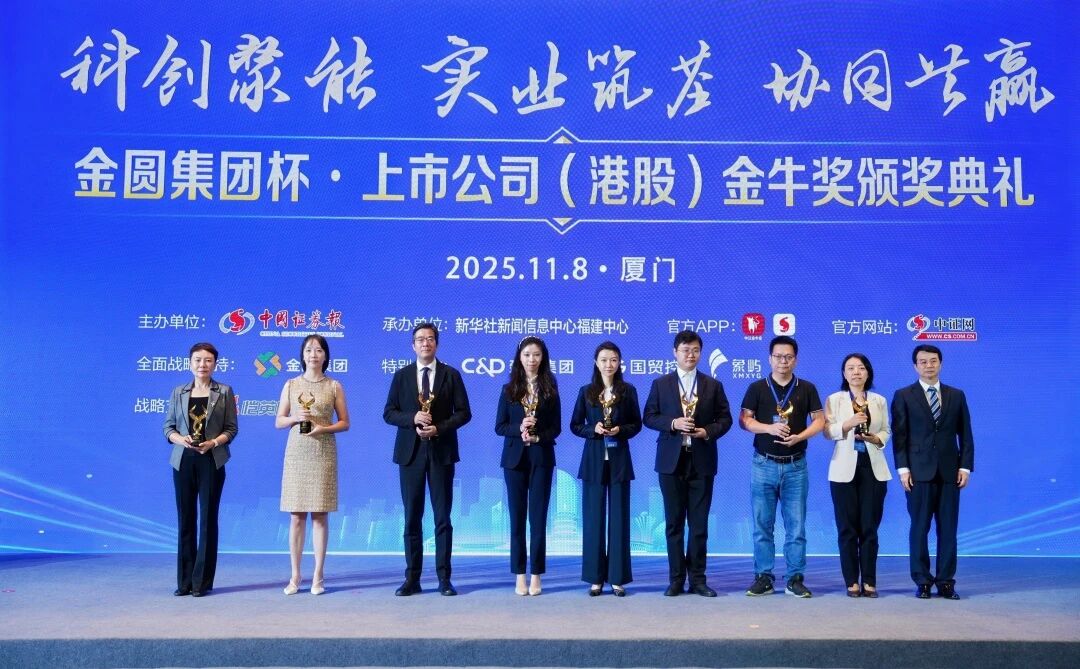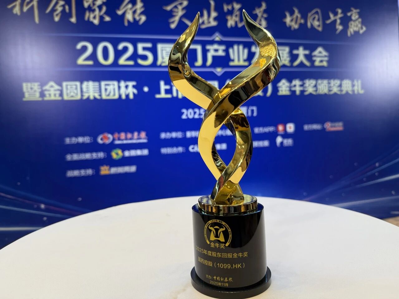11月8日,由中国证券报主办的2025厦门产业发展大会暨金圆集团杯·上市公司(港股)金牛奖颁奖典礼在厦门隆重举行,本次大会围绕“科创聚能、实业筑基、协同共赢”的主题展开,现场揭晓了卓越港股公司金牛奖、股东回报金牛奖、永续经营金牛奖等十一大奖项。国药控股荣获“2025年度上市公司(港股)金牛奖—股东回报金牛奖”。这也是国药控股自2023年起,连续第三年获得上市公司(港股)金牛奖的殊荣。“金牛奖”系列奖项是中国资本市场最具公信力的权威奖项之一,旨在发现和表彰业绩优秀、治理卓越、积极回报股东、具有崇高使命和社会责任感的上市公司。此次,公司获得这一殊荣,充分体现了业界和资本市场对国药控股公司价值、治理水平及市场表现的高度认可。