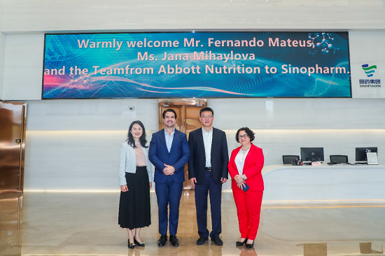 10月31日,雅培营养品国际事业部高级副总裁Fernando Mateus先生\亚太区副总裁Jana Mihaylova女士以及中国区总经理吴海英女士携雅培医学营养高管团队到访国药控股。国药控股总裁、执行董事刘勇,副总裁陈战宇,国药控股相关业务团队负责人出席交流会议,双方就雅培医学营养品在中国健康事业的发展前景进行深入交流。