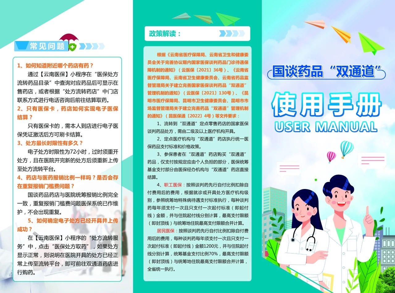 “双通道”管理机制是国谈药落地的重要举措,政策的出台改变了原有医保统筹基金在医疗机构支付的单一途径,纳入部分社会定点零售药店,提升了国谈药的可及性。目前,昆明已实现国谈药品种“双通道”全覆盖,国药控股云南公司在昆明的7家药房紧邻三甲医院、均已取得“双通道”管理资质,国药控股在全国的“双通道”定点药房已达1100多家。